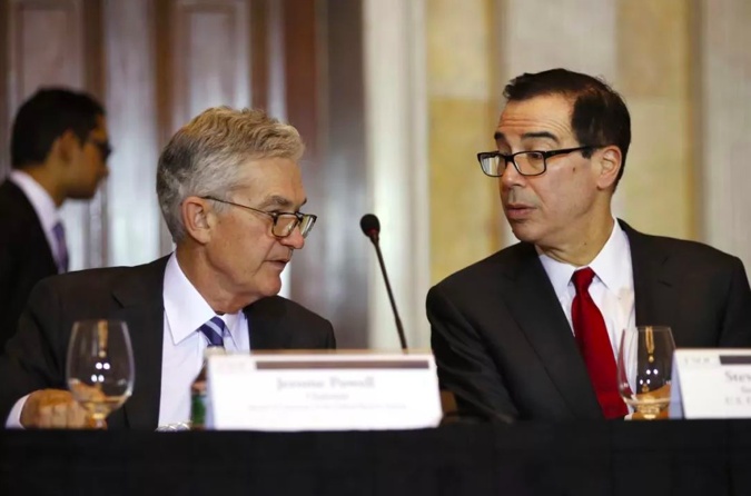 ▲美联储主席鲍威尔(左)美国财长努钦(右)