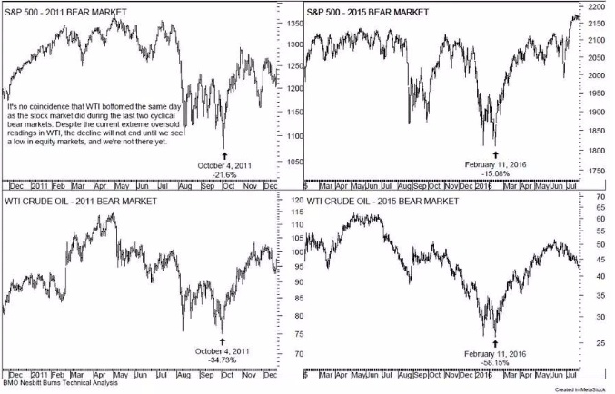 布伦特原油和标普500指数,在2011年和2015年这两个最近的熊市周期中同一天触底,并非巧合。
