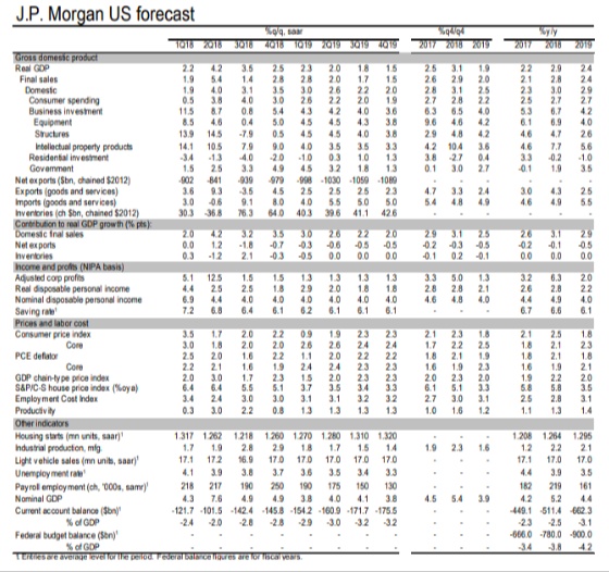 摩根大通预测,明年全年的美国经济增速将显著放缓至1.9%,远低于今年四季度的同比3.1%;但美国经济增速并不会在2019年初就开始大幅下滑。
