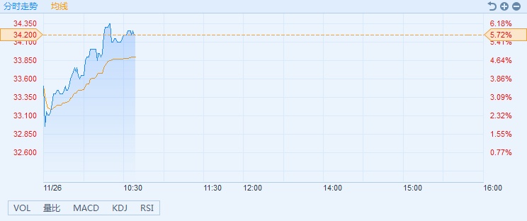 智通财经APP获悉,前10月原保费收入90.83亿元人民币,同比增94.7%,众安在线(06060)股价造好,截至10时38分,涨5.72%,报价34.2港元,成交额1899.83万。