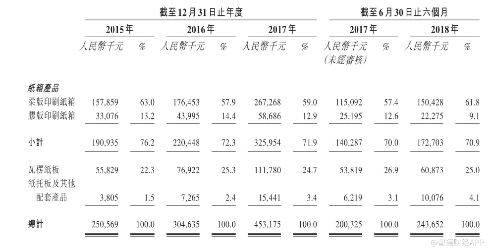 营收占比约12%-14%左右的胶版印刷纸箱,在记录期内实现收入3307.6万元、4399.5万元、5868.6万元,年复合增长率为21%,也远高于行业6.3%的增速。