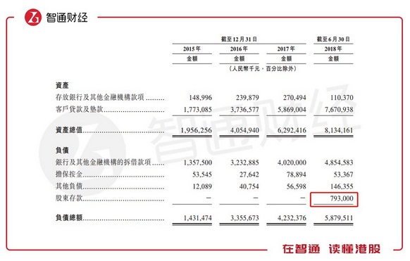 除了融资成本提高,智通财经APP注意到,招股书显示,截至2018年6月底,东正金融的负债端多出了一笔7.9亿元的股东存款。这也反映了东正金融此前主要依靠银行拆解款项,过于单一的融资模式并不利于其业务的运营。