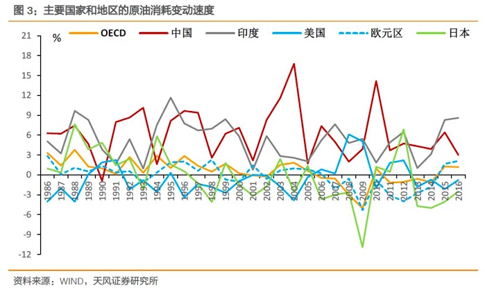 1、主要经济体中的原油需求,未来的主要新增力量是中、印为代表的新兴市场国家,不过随着中国经济增速的放缓,趋势上似乎并不利于原油能源的显著增高;
