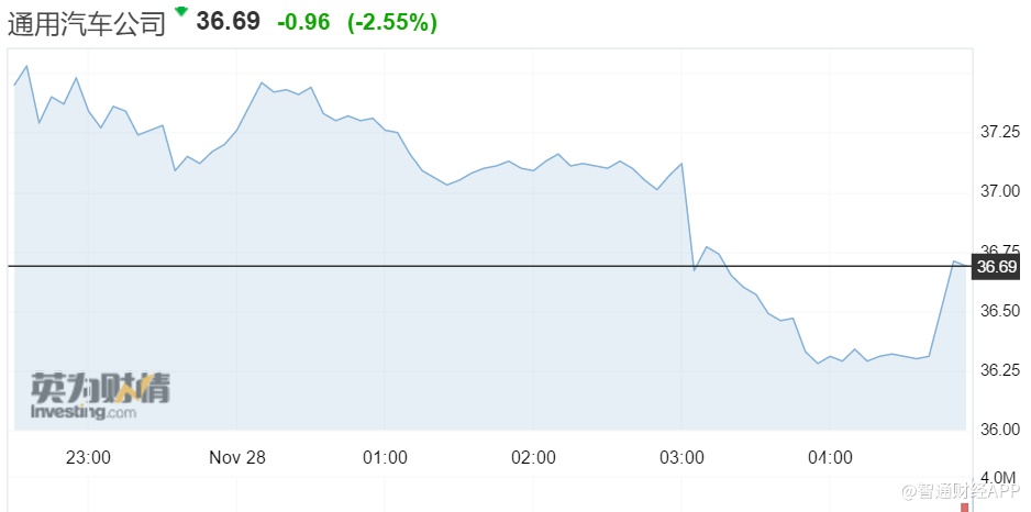 智通财经APP获悉,特朗普昨日表示,在通用汽车(GM.US)宣布计划关停几家美国工厂并裁员超1.4万人之后,他将考虑削减对该公司的所有补贴。随后通用股价小幅下跌2.55%,收报于36.69美元。