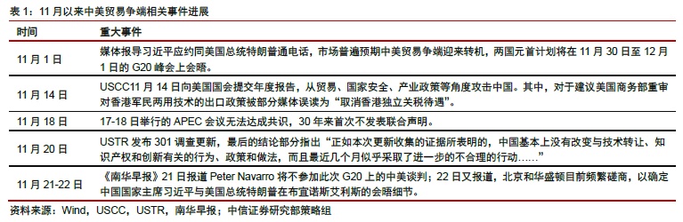 11月以来市场对G20预期乐观,临近兑现的时候需要警惕,G20的最终结果大概率没法超预期。最乐观的场景下,被贸易战大杀特杀的科技股有那么一点点机会;