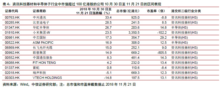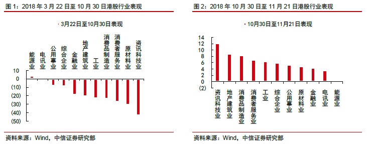 情绪回暖后,11月至今恒指上涨5.6%,之前领跌的资讯科技板块这次有点“超跌反弹”的味道,领涨12%。显然,对于贸易战这一因素,资讯科技板块的弹性是最大的。