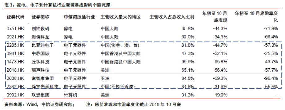 乐观情景下,双方协商一致,贸易局势不再恶化,那么年初以来受拖累明显的行业有望获得修复,这里面跌了快一半(-46.9%)的电子将有望反弹,中信证券也顺道梳理了“错杀”最严重的个股: