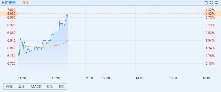智通财经APP获悉,5G频谱资源基本确定,中国通信服务(00552)股价持续走强,截至10时58分,涨4.02%,报价6.98港元,成交额3505.76万。