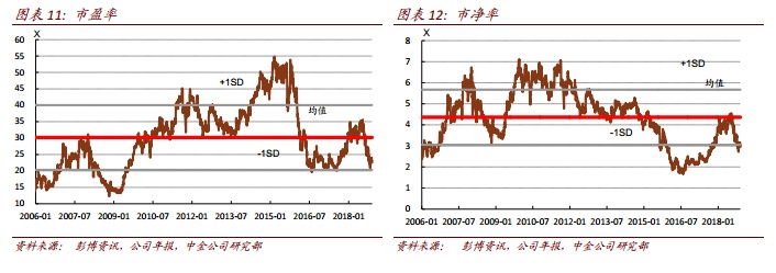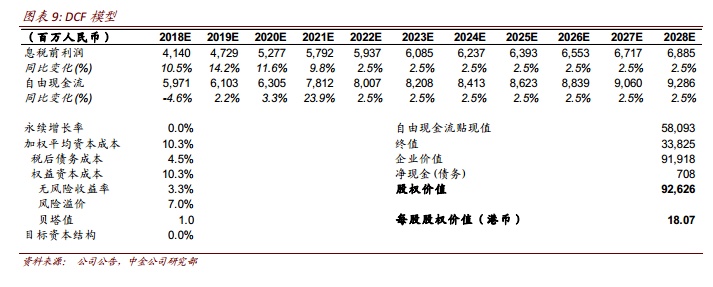 当前股价对应 2018/19 年市盈率为 26/22.9 倍,即便剔除饮料少数股东权益后的 EV/EBITDA 估值今明两年仍分别只有 8.8/7.8 倍。 维持康师傅推荐评级, 因 EV/EBITDA 估值明显低于全球同业,且公司市占率与盈利均衡发展战略有助于销售稳步增长与利润率持续提升趋势,收购预期抑或大幅提高现金派息率潜力亦体现公司投资价值。基于 DCF 模型下的 2018 年末目标价由 20 港币下调至18.07 港币(下调 9.6%,因今明两年盈利预测均有小幅下调),对应 12.5x/11.1x 2018/19 EV/EBITDA, 距当前股价有 41.8%的上行空间。