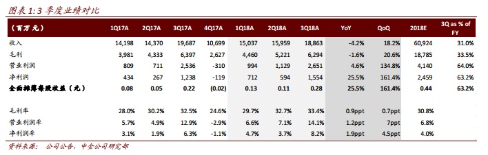 2018 年 3Q 业绩超过预期