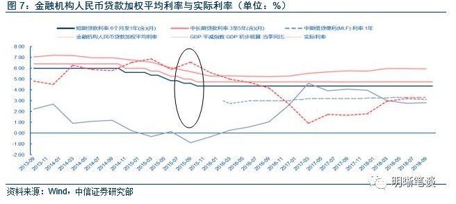 这两个指标都可以近似的说明刨除价格因素外企业的实际贷款利率,更客观的反应企业实际融资难度,图中显示在2012年、2015年两次降息区间,皆是实际利率开始呈现走高趋势,或可解释为可能释放宽松货币政策的信号。观察下图,可以发现,在实际利率过高时央行通常会采取降息的措施降低企业的融资成本,而经过央行的调整实际利率水平会有明显的下降,如经历过2014、2015年降息周期后,实际利率水平从10%的高位水平大幅下降,一度出现倒挂现象。