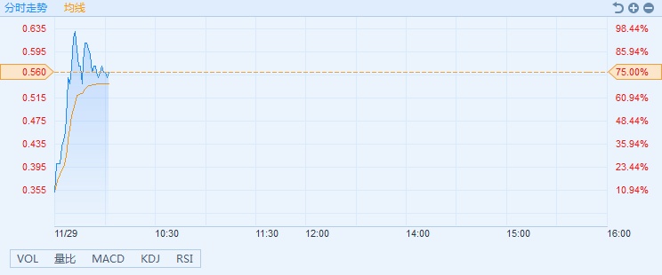 截至10时01分,新体育涨75%,报价0.56港元,成交额682.48万。