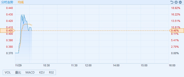 截至10时04分,中国金洋涨9.46%,报价0.405港元,成交额251.66万。