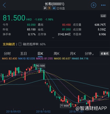 截至今日收盘,长和(00001)报81.50港元,跌1.98%。