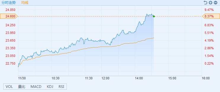 智通财经APP获悉,中国恒大(03333)午后股价强势拉升,截至14时32分,涨8.59%,报价24.65港元,成交额11.62亿。