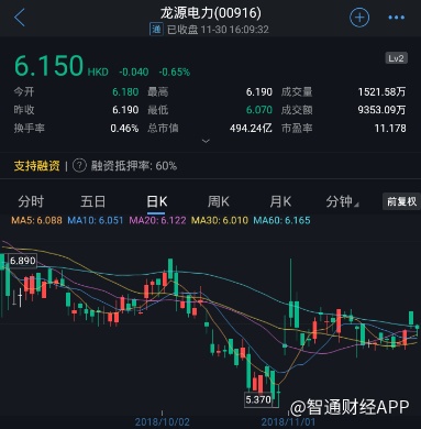 截至今日收盘,龙源电力(00916)报6.150港元,跌0.65%。