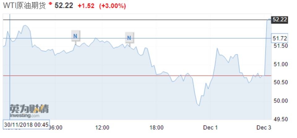 受中美相互停止加征新关税消息影响,今早美油跳空高开涨3%,截至发稿报52.22美元。