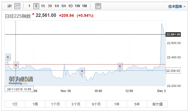 智通财经APP获悉,中美贸易关系缓和,周一亚太股市高开。日本日经225指数高开1.3%,报22629.39点。截至发稿,涨幅收窄,升0.94%,报22561点。韩国首尔综指高开1.5%,截至发稿,涨幅收窄。