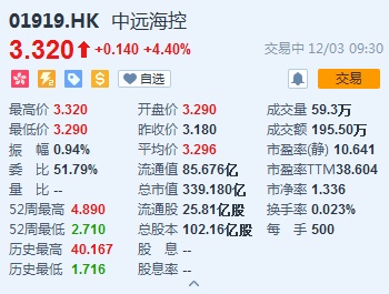 中远海能(01919)涨4.4%,报3.32港元。