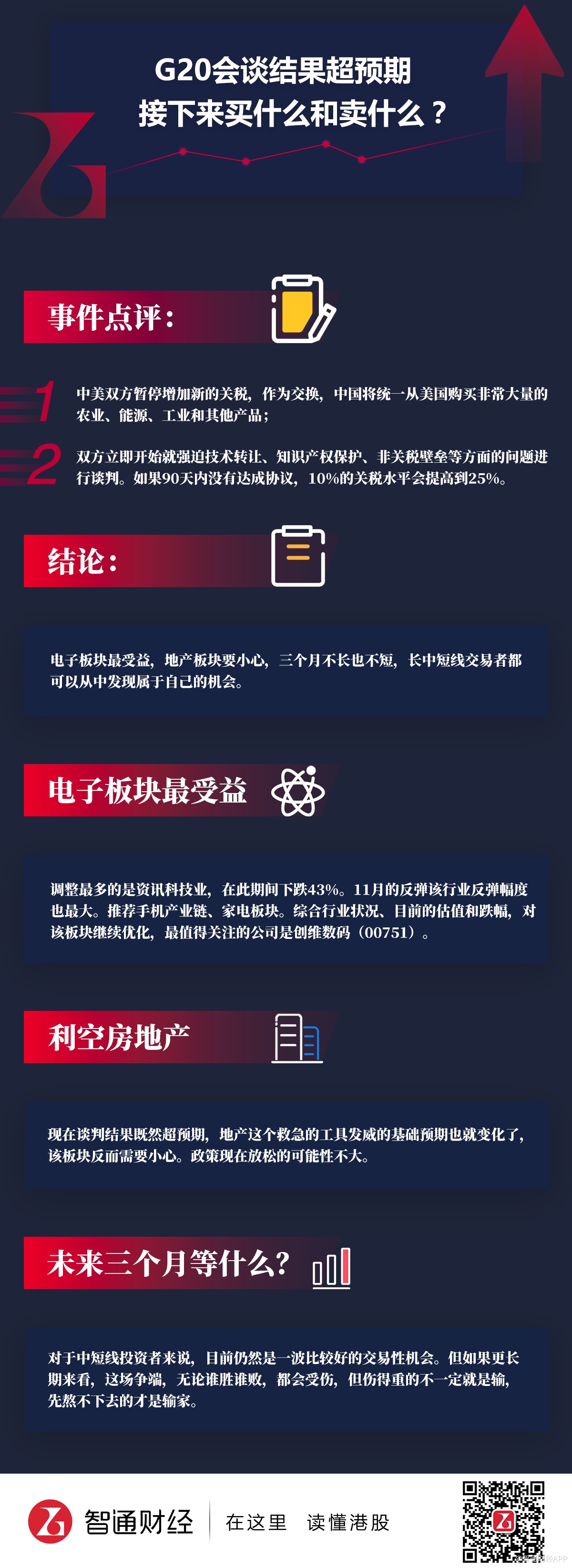 市场对这次会晤也给予了肯定的评价。截至发稿时,恒生指数上涨2.74%,报27232.20。恒生国企指数上涨2.86%,报10925.91。智通财经APP也在昨日第一时间给出了港股策略观点(投资笔记 | G20会谈结果超预期,接下来买什么和卖什么?)
