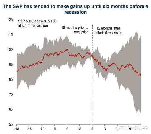 更令人惊讶的是,尽管他对整体形势持乐观态度,但从瑞士信贷预测的字里行间来看,仍给人们留下了市场衰退即将来临的印象:瑞信显示,从历史上看,市场在衰退前6个月左右就停止了上涨……