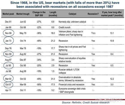 事实上,自1968年以来都出现的熊市,都与经济衰退有关。