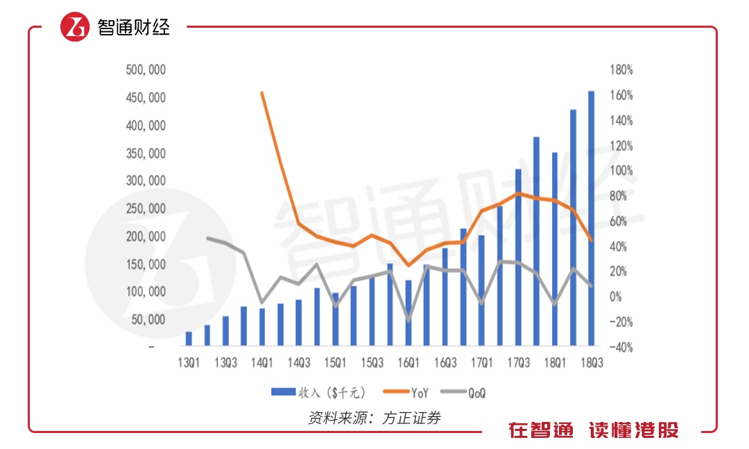 微博在3Q18的营业收入为4.6亿美元,同比增长44%,其中广告收入40.9亿美元,同比增长48%,而增值服务为0.509亿美元,同比增长18%,广告收入的占比达89%,是微博营收的主体。