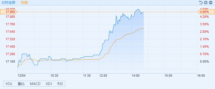智通财经APP获悉,山东黄金(01787)午后强势上涨,A股涨逾3%,港股涨近5%。截至14时09分,涨4.9%,报价18港元,成交额2127.86万。