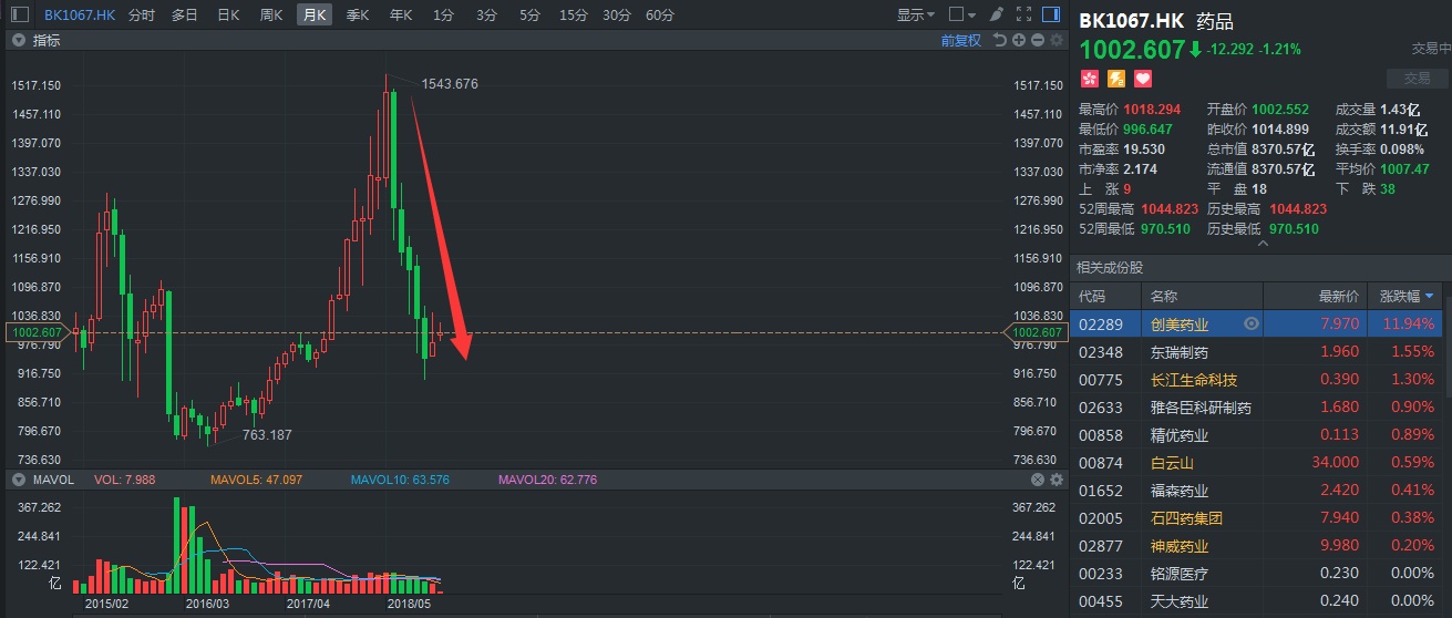 而受“杀估值”与政策气氛压制,港股医药板块惨不忍睹,自6月份起,改板块就没有回过神,更别提中间还发生了“疫苗问题”等短期事件的驱动,哪还有去年牛股板块的影子?截止目前,改板块跌落33个点,如中国生物制药(01177)这种权重股期内更是丢掉了47个点,市值蒸发860多亿港元,要知道,这是可是连庄港股医药龙头多年的明星股。