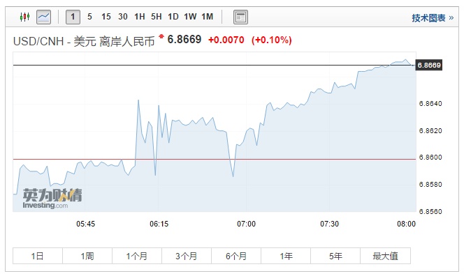 同时受此消息影响,离岸人民币掉头下行,迅速跌破6.86关口。截至发稿,跌0.10%,报6.8669点。