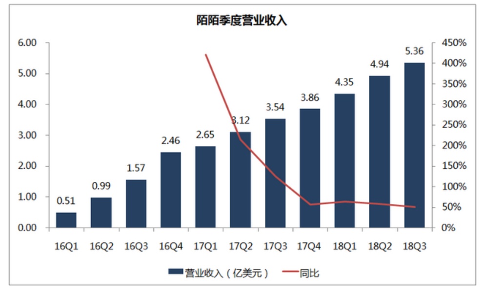 智通财经APP获悉,近期刚被做空的陌陌(MOMO.US)公布了截至2018年9月30日的第三季度未经审计财报。报告显示,其三季度营收为5.36亿美元,同比增51%,超出此前市场预期的5.33亿美元。