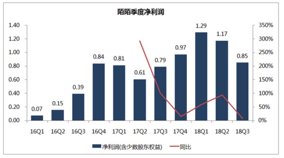 第三季度归属于陌陌的净利润为0.85亿美元,较去年同期的0.79亿美元增长7.71%。调整后每ADS盈利0.39美元,去年同期为0.38美元。