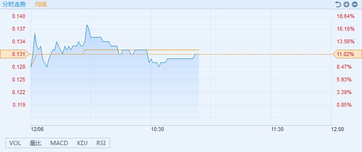 智通财经APP获悉,有线宽频(01097)与中国移动(00941)订立网络发展协议,早盘逆市大涨。截至10时51分,涨11.02%,报价0.131港元,成交额1118.29万。
