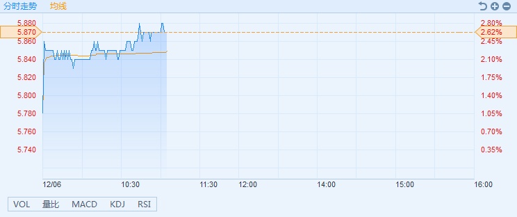 恒指反向杠杆产品,南方一倍看空恒指(07300),截至11时04分,涨2.62%,报5.87港元,成交额达1.97亿。