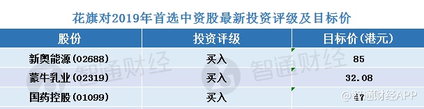 二、花旗对2019年首选中资股最新投资评级及目标价汇总