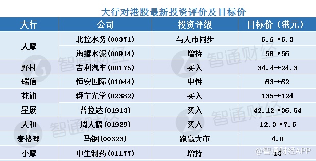 一、花旗对2019年首选港股最新投资评级及目标价汇总