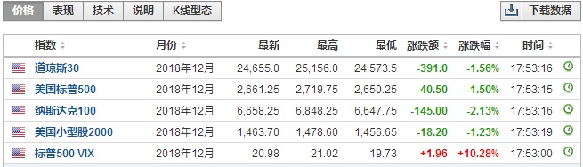截至发稿,道琼斯30指数期货跌391.0点或1.56%,报24655.0点;美国标普500指数期货跌1.50%或40.50点,报2661.25点;纳斯达克100指数期货跌2.13%或145.00点,报6658.25点。美国小型股2000指数期货跌1.23%或18.2点,报1463.70点。标普500VIX指数期货报20.98,涨10.28%。