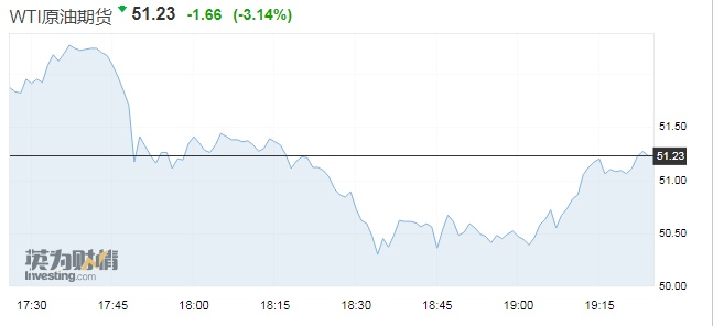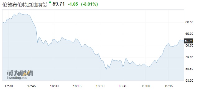 截至发稿,布伦特原油期货报59.71美元/桶,跌59.71或3.01%。WTI原油期货报51.23美元/桶,跌1.66或3.14%。