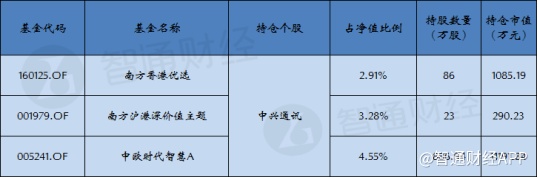 此外,华为的“难兄难弟”中兴通讯,截至三季度末也被3只港股基金重仓持有共计1398.94万股,持仓市值1.74亿元,其中中欧时代智慧A持有中芯国际886.94万股,占净值比例4.55%,持仓金额1.12亿元。