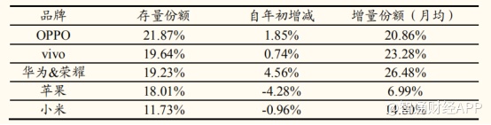 数据显示,华为(含荣耀)手机存量市场份额在2018年继续提升,达到19.23%。11 月华为新增设备数达千万台。高端机型中,11月,Mate 20新增设备57万台,Mate 20 Pro新增设备27万台,Mate 20 X新增设备18万台,Mate 20 Pro 更是在10月26日开售后不久就处于缺货状态。