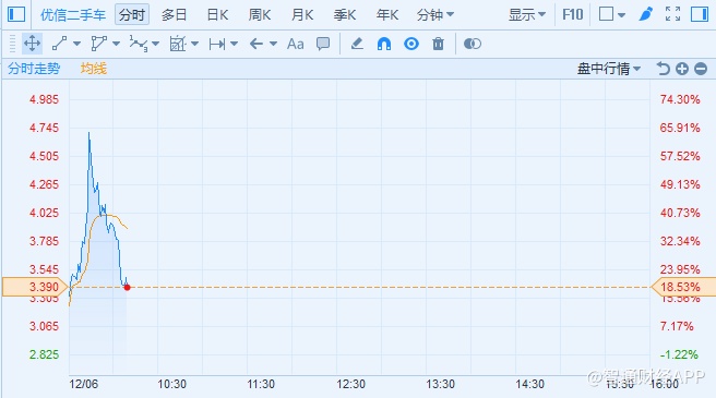 截至发稿,优信股价报3.44美元,涨20.28%或0.58。