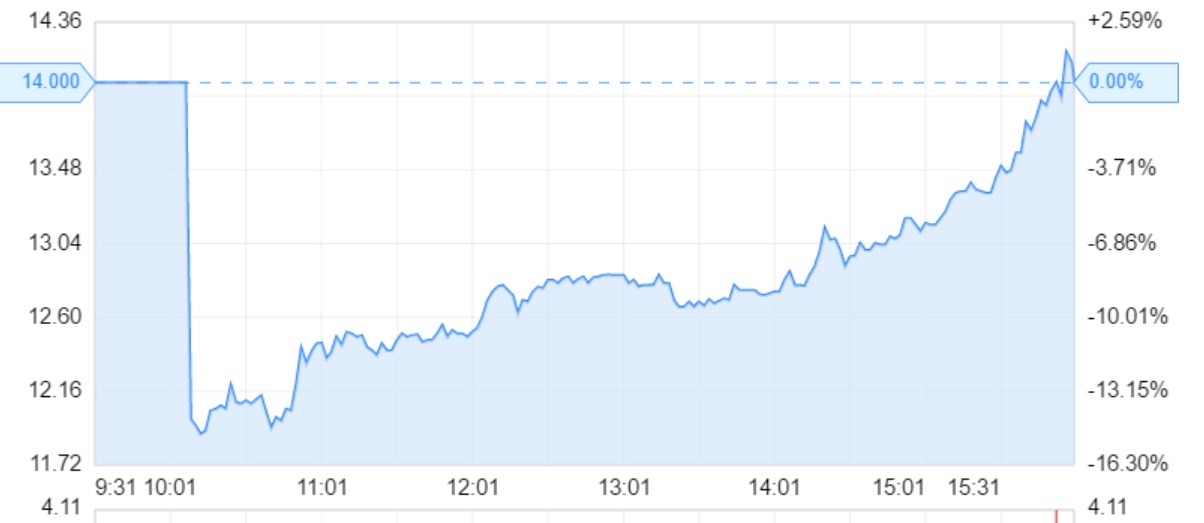 智通财经APP获悉,蘑菇街(MOGU.US)昨日正式在纽交所挂牌上市,开盘报12.25美元,较IPO发行价14美元下跌12.5%。盘中股价一度跌逾15%。随后股价跌幅收窄,收报14美元,持平于发行价,总市值约15亿美元。