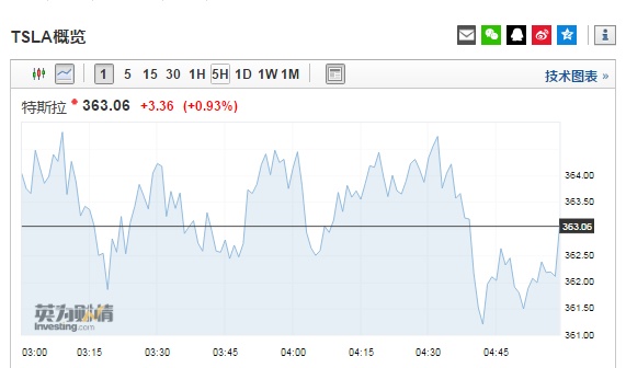 特斯拉昨日股价收报363.06美元,收升0.93%。