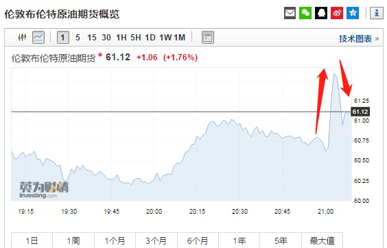 但随后伊朗代表表示,伊朗尚未与OPEC达成协议,OPEC谈判仍在持续,焦点在协议用词上。油价又迅速回落,截至发稿,布伦特原油涨1.76%报61.12美元/桶,WTI原油涨1.22%报52.12美元/桶。