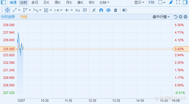 截至发稿,博通股价涨3.14%或7.76,报235美元。