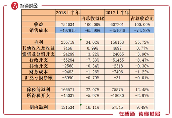 智通财经APP经过对比2018年上半年和去年同期数据,发现真正影响到净利润主要还是销售成本上,也就是原材料价格和销售价格了。