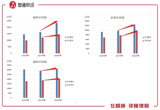 而对比往年中期各产品的平均售价和平均成本数据可以发现,只有染料中间体的毛利润(平均售价-平均成本)是大幅提升的。