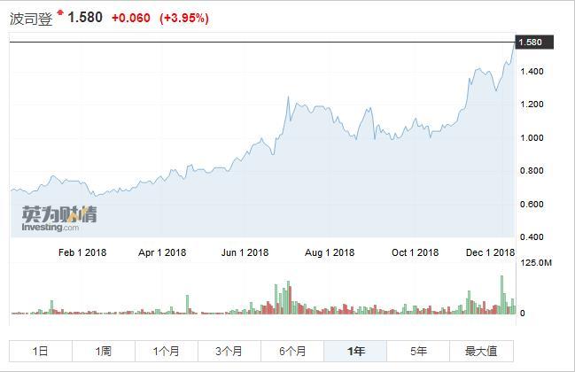 你看最近天气这么寒冷,港股唯一的羽绒服老大波司登(03998.HK)股价就明显受到资金的惠顾。智通财经APP了解到,截至2018年9月30日止6个月,波司登收入34.44亿元人民币,同比增长16.4%;该公司拥有人应占溢利2.51亿元,同比增长43.9%;每股盈利0.0238元,中期股息每股0.02港元。