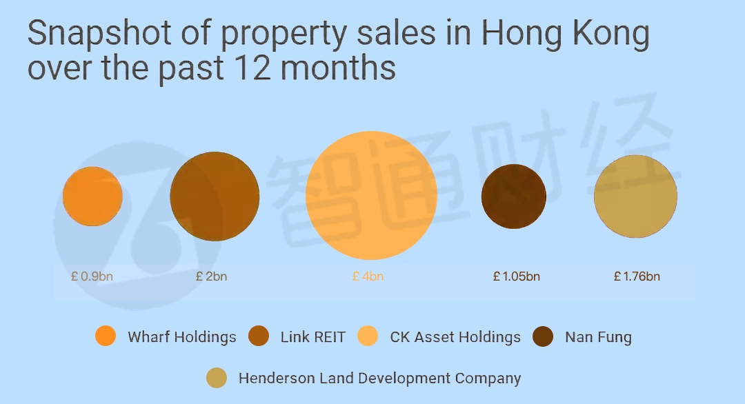 EGI数据显示,过去一年,香港投资者在香港当地卖掉了价值175亿英镑的房产,其中南丰卖掉9亿英镑排名前五,香港首富李嘉诚旗下的长实卖掉约40亿英镑排名第一。
