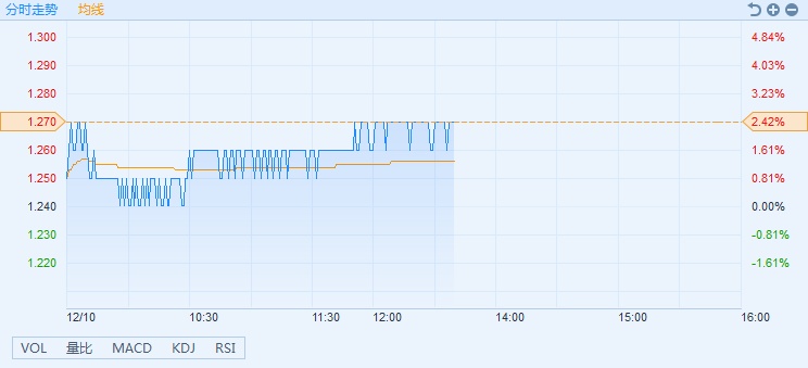 截至13时39分,中国铁塔(00788)涨2.42%,报1.27港元,成交额达5.7亿。